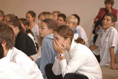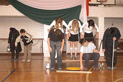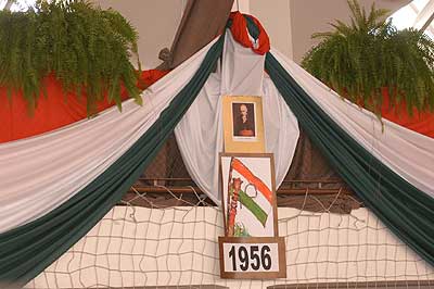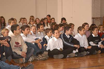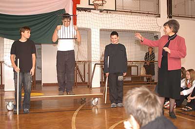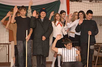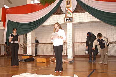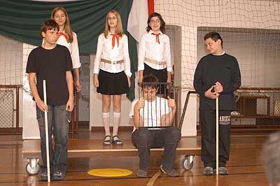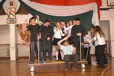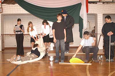 A Szent Erzsébet Katolikus Általános Iskolában különös groteszk játékkal emlékeztek az 1956-os forradalom és szabadságharcra 2005. október 21-én az iskola tornatermében.