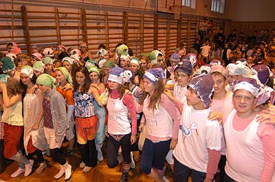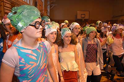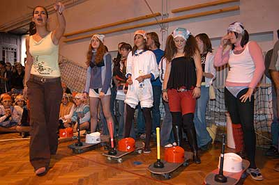 A feladatokról: Mint már megszokhattuk, hogy a gólyaavatáskor vannak belsős és külsős feladatok, hogy ne csak az iskola diákjai lássák, hogy gólyaavatás van, hanem Szentes lakosai is. A iskola tornaterme zsúfolásig megtelt diákokkal, hogy végrehajtsák "önként jelentkezés" útján a célul tűzött feladatokat.