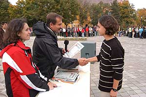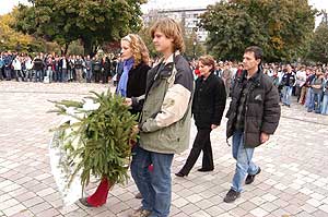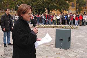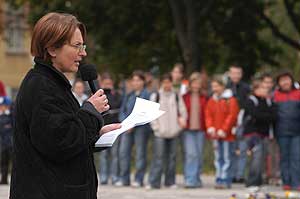 A koszorúzás után a gimnázium tanulóinak rendezett verseny végeredményének kihirdetése következett, és ezzel zárult a 2005-ös megemlékezés. Szentes, 2005. 10. 25.
