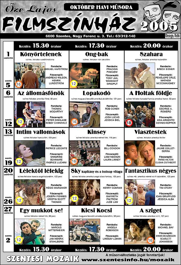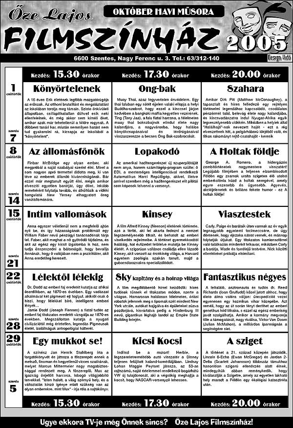 Őze Lajos Filmszínház 6600 Szentes, Nagy Ferenc u. 3. Tel.: 63/312-140