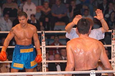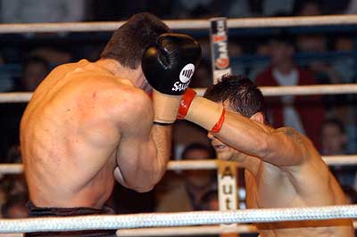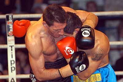 Az egyetlen hazai belharcban (eredetileg kettő lett volna, de Béres Zoltán lemondta a Rubin Olivér elleni cirkálósúlyú ütközetét) Popovics Tamás (18–3–1, 7) a hatodik menetben kényszerítette feladásra Halász Gábort (17–9, 6), és megszerezte a félnehézsúlyú magyar bajnoki övet. Popovics a második és az ötödik menetben is megfogta vetélytársát, a hatodikban számoltak is Halászra, majd a bíró véget vetett a csatának. |