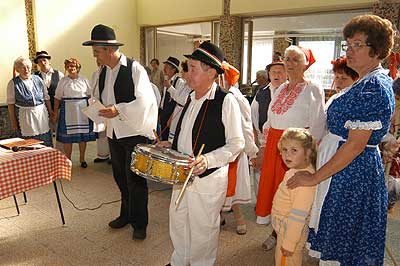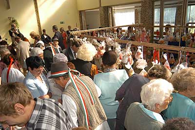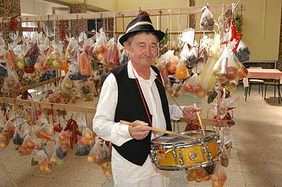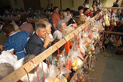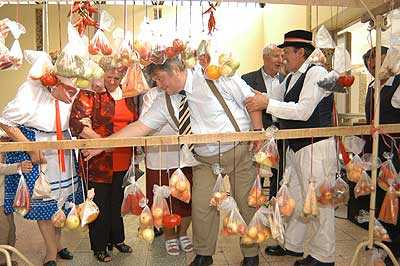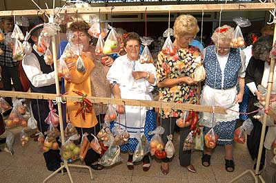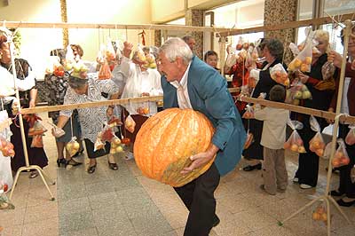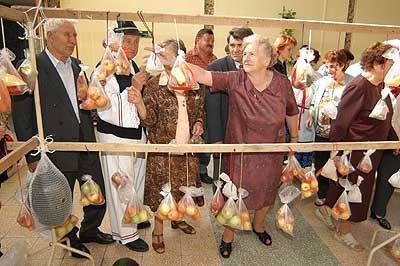 A SINOSZ-osok gyermekek módjára izgultak a rendezvény sikeréért. A fő attrakció persze mi is lehetett volna más mint a szüret, ami nem volt mindennapi. A fogasokra felkötött szöggel kivert cseréplécekre kerültek a fürtök, amelyek nem voltak zsákbamacskák, mert a nejlonon keresztül láthattuk, hogy egyszer tényleg szőlőt, máshol pedig sárgarépát, almát, körtét, gyökeret vagy éppen hagymát rejtett.