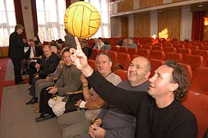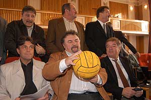 A szentesiek az alábbi összeállítással ugrottak a mélyvízbe: Horváth – Mezei, Komlósi, Pengő, Kucsera, Kádár, Dömsödi, csereként szóhoz jutott Szénászki és Fülöp, az edző dr. Tóth Gyula volt. Korábban még játszott a gárdában Faludi, Vass, Juhász, Kurucz és Soós. Szeol AK: Ugrai – Molnár L., Lengyel G., Zámbó, Bozsó, dr. Gál, Pottyondy; cserék: dr. Szittya, Sike; edző: Debreczeni Pál. Az együttes tagja volt még: Török B., Dudás, Csernus, Kuczora, Kiss L., Kárász S. A gólokat Kucsera (3), Mezei, Komlósi, Szénászki, ill. Pottyondy (3), Bozsó és Sike szerezte. Szentes, 2005. 11. 24. |