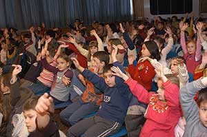 Rendhagyó színházi előadást tekinthettek meg a Kiss Bálint Református Általános Iskola növendékei 2005. november 23-án az Ifjúsági Ház nagytermében. A zenés előadást a ékéscsabai Jókai Színház művészei adták elő. Szentes, 2005. 11. 30. |