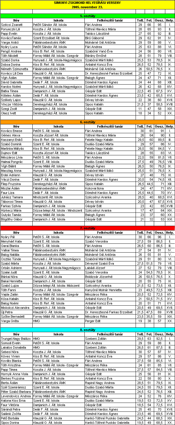 A Damjanich János Általános Iskolában rendezték meg a Simonyi Zsigmond Országos Helyesírási Verseny területi fordulóját 2005. november 23-án, melyen 82 kisdiák mérte össze tudását a magyar nyelv helyes írásában. Aki eljutott erre a versenyre, az már túl van egy iskolai válogató versenyen, így ők, mint az iskolájuk legjobb helyesírói versenyeztek.