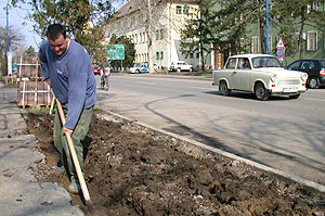Összesen 60 méter (6x10méter) új virágágyást alapoznak a napokban a Kossuth utca Apponyi téri szakaszán. Az a rekonstrukció folytatódik, amely a főutca városközponti szakaszán volt az elmúlt esztendőben. Hat darab egyenként 10 méter hosszú virágágyás került kialakításra úgy, hogy az ott található régi széttöredezett virágágyak lettek elbontva és azok helyére kerültek az újak. A gyengénlátóknak sem kell változásra számítaniuk, mert éppen akkora méretben lettek kialakítva az új ágyások, mint amekkorák a régiek voltak. Ha minden igaz, a hét végére végez a kivitelező (a kivitelezést az Usztrunul és Forrai Mérnöki Kft. munkatársai végzik) és ezután a kertészeké a terep. Szentes, 2005. 03. 30. |