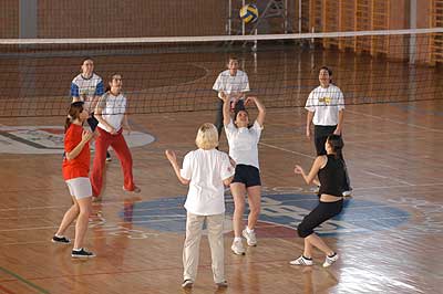 Szépen komótosan estek a pontok itt és ott, de elmaradtak a látványos vetődések és a hangszalag szakadásos sikítások. Mindenesetre látszott, hogy kik azok akik jobban állnak ennek a "nem is olyan egyszerű" sportág gyakorlásában, persze testnevelő tanárok előnyben, de azért nekik sem sikerült mindig minden ("Tudja tanárnő kézzel, nem fejjel!").