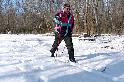 A képen jól látszik, hogy még javában lehet hódolni (2005. március 10.) a téli sportoknak a szentesi Tisza parton, mert a napközbeni hőmérséklet sem emelkedik nulla fok fölé. Ha minden igaz akkor a következő héten már nem síelve lehet itt végig menni, hanem az olvadás miatt úszva! Szentes, 2005. 03. 11. |