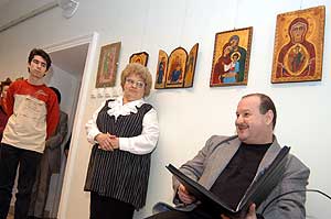 A kiállítás megtekinthető a könyvtár nyitvatartási idejében 2005. március 19. és április4. között. Dr. Dobos András megnyitójában úgy fogalmazott, hogy hiába a téma azonossága nincs két egyforma alkotás még az ikonok között sem. Az ikonfestészetnél egy-egy alkotás a festő lelkének egy-egy darabját tükrözi. Szentes, 2005. 03. 22. |