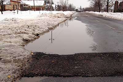 És a másik oldala! Ha középen púpos is a javított szakasz (úgy mond majd beletapossuk!) de a szélén, ahol a víz le tudna folyni, miért nem csinálták meg szintben? A lakók már csak abban reménykednek, hogy amikor a végleges útjavítást fogják elvégezni ilyen hibát nem fognak elkövetni a kivitelezők! Szentes, 2005. 03. 10. |