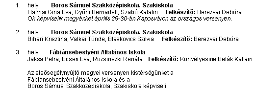 Csecsemőápolási és egészségnevelési verseny végeredménye