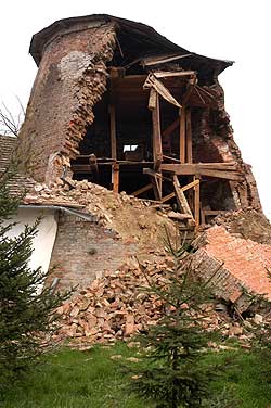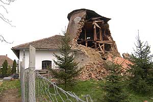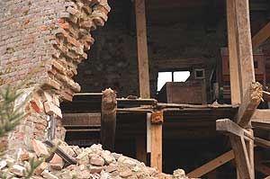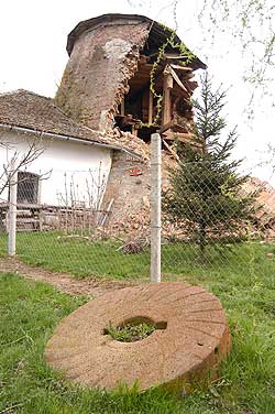 Az elmúlt hetek nagy esőzései alatt egy nagy robajlással kidőlt a malom oldala. Az ott lakók egyből bejelentették a Polgármesteri Hivatal Műszaki Osztályára , akik azonnal kivonultak a Piti malomhoz helyszínelni. A malom ugyan nem tartozik a védett épületek közé, de mégis a tulajdonost a helyreállításra kötelezik. A riasztó képek ellenére reméljük, hogy nem fog eltűnni Szentes egyik nevezetessége és hamarosan újra a városunkba látogató turisták egyik kedvelt célpontja lehet. Addig is idézzük a bejárat fölé írt sorokat: BÉKESSÉG, BARÁTSÁG, NYUGALOM… Szentes, 2005. 04. 13. |