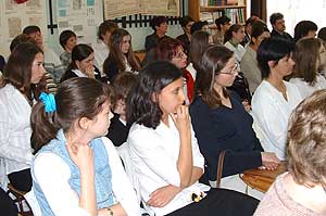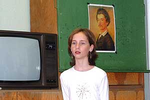 A 7-8. osztályosoknál A bírálóbizottságban Csimadia Judit szegedi szaktanácsadó, dr. Keresztesné Farkas Erzsébet, a helyi Klauzál Gábor Általános Iskola magyartanára és Szurmik Zoltán, a Horváth Mihály Gimnázium magyartanára vett részt. Nagyon nehéz helyzetbe került a zsűri, hiszen ez a korcsoport főleg drámai motívumokat tartalmazó alkotásokat szólaltatott meg. Hallhatott a közönség gyönyörű tolmácsolásban a hazáról, az édesanyáról, az elmúlásról szóló verseket. Petőfi Apostol c. művének részlete, vagy József Attila Kései sirató c. verse bizony nem egy hallgatónak csalogatott könnyeket a szemébe... Hosszas tanácskozás után az alábbi eredmények születtek: 1. Búzás Anna: Makó, Belvárosi Ált. Isk. Felkészítő nev.: Kiss Edit, 2. Kiss Márta: Kiss Ferenc Ált. Isk. Felkészítő nev.: Dukai Klára, 3. Fehér Balázs: Hódmezővásárhely, József Attila Ált. Isk., Felkészítő nev.: Arnóczky Mária, 4. Kacziba Zita: Csongrád, Batsányi János Gimnázium. Felkészítő nev.: Lovas Laura, 5. Balogh Ágnes: Ruzsa, Weöres Sándor Általános Iskola. Felkészítő nev.: Majorosné Barát Márta. Különdíjat kapott: Nógrádi Fanni: Petőfi Sándor Ált. Isk. Felkészítő nev.: Fári Andrea. Szentes, 2005. 04. 28. |