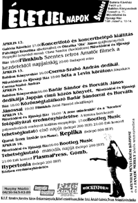 16. (szombat) Életjel napok - 5. nap Részletes program ITT tekinthető meg! Bootleg Music tehetségkutató verseny, 16 óra Koncertek (21.00 óra): PlasmaPress, Gömb, Hypertonia (Mindkét program az Ifj. Házban lesz)
