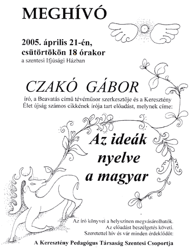 Művelődési és Ifjúsági Ház, 18.00 Czakó Gábor előadása