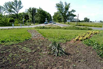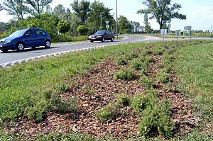 Az elmúlt évben a cserjék és virágok közel 30%-át kellett újratelepíteni és a körforgalomhoz vezető utak mellé ültetett gömbakácokból is 22 db tűnt el. Szentes, 2005. 06. 01. |