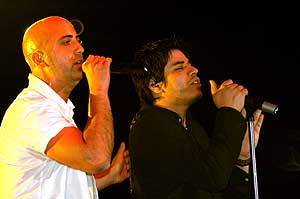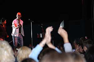 Az est élő koncertjére való "gyors" hangolás és beállás után következett Sás Péter színész, parodista műsora, aki több színészt, előadóművészt idézett meg, csakhogy ekkor már közel ezren várták türelmetlenül a TNT élő koncertet.