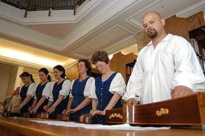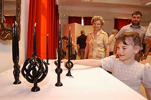 A kiállításon a következő "kismesterek" alkotásait tekinthetjük meg: Bese László (a Magyar Kultúra Lovagja), Bors Károly, Kádár Barbara és Vígh Ferencné keramikusok, Ballér Barbara, Kovácsné Piti Ágnes gyapjúszövők, Anti Sándor rézműves, Gulyás János bútorműves, Kátai József, Nagy Andrea gyertyamártók, Rupaszov Ferencné csipkeverő, Szécsi Andrásné csipkekészítő, ifj. Szabics Ferenc fafaragó, ifj. Szabics Ferencné, Szemerédi Endréné hímzők és Tóth Annamária kosárfonó. A kiállítás megtekinthető a könyvtár nyitvatartási ideje alatt 2005. június 11-ig. Szentes, 2005. 05. 29. |