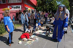 2005. május 21-én második alkalommal került megrendezésre a Piramis Áruház nagyszabású aszfaltrajzversenye és családi délelőttje. Idén is több, mint 200 gyermek látogatott el a rendezvényre, szülők és pedagógusok kíséretében.