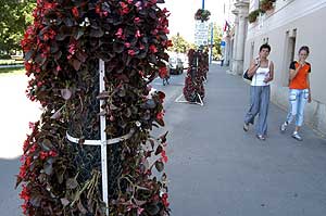 Ilyen volt! Egyszer már ez az eset megtörtént azokkal a virágoszlopokkal melyek a Városháza előtti útszakaszra lettek kitéve, és ez az eset újra megtörtént a múlt héten (2005. június 13.). A tettesek ne örüljenek, mert van rá lehetőség, hogy kiderüljön tettük, mert a közelben ott van a taxis droszt, ahonnan jól látható ez a járdaszakasz!