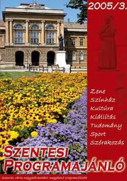 2005. június végén megjelent a Szentesi Programajánló füzet harmadik száma. A negyedévente megjelenő ingyenes kiadvány célja, hogy az aktuális év negyedévenkénti programjait, rendezvényeit propagálja. Sajnos nem igazán jutnak el a hírek a rendezvényekről minden háztartásba, és ezt az űrt kívánja betölteni ez a 8 oldalas kiadvány. A képekre kattintva a kiadvány oldalai kinagyíthatók!