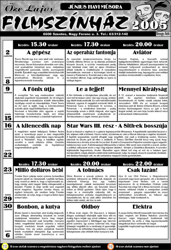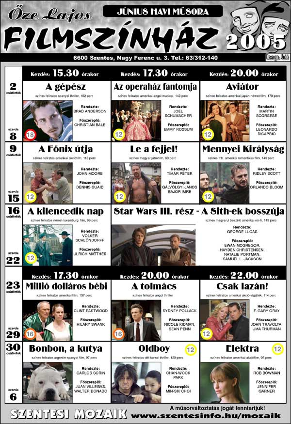 Őze Lajos Filmszínház 6600 Szentes, Nagy Ferenc u. 3. Tel.: 63/312-140