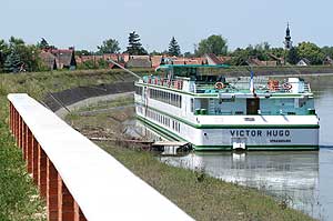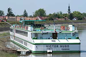 A 2000-ben elkészült 82,5 méteres 50 kabinos monstrum 2005. június 2-án este fél hétkor haladt el Szentes mellett (10 órával korábban, mint ahogy tervezték, mert a magas vízállás miatt Csanyteleken nem tudtak kikötni) és a szentesi kanyarban hatalmas kürtjével kötelezően dudálva a környékben legelő nyájat is szétriasztotta. Mivel minket is megtréfált érkezésével a hajó, ezért nem hagytuk magunkat és utána eredtünk. Csongrádon sikerült utolérni, ahol a hajóban utazó angol és német turisták kiszálltak, és elutaztak az ópusztaszeri történelmi emlékparkba, ezért egész délelőtt Csongrádon pihent Victor Hugo.
