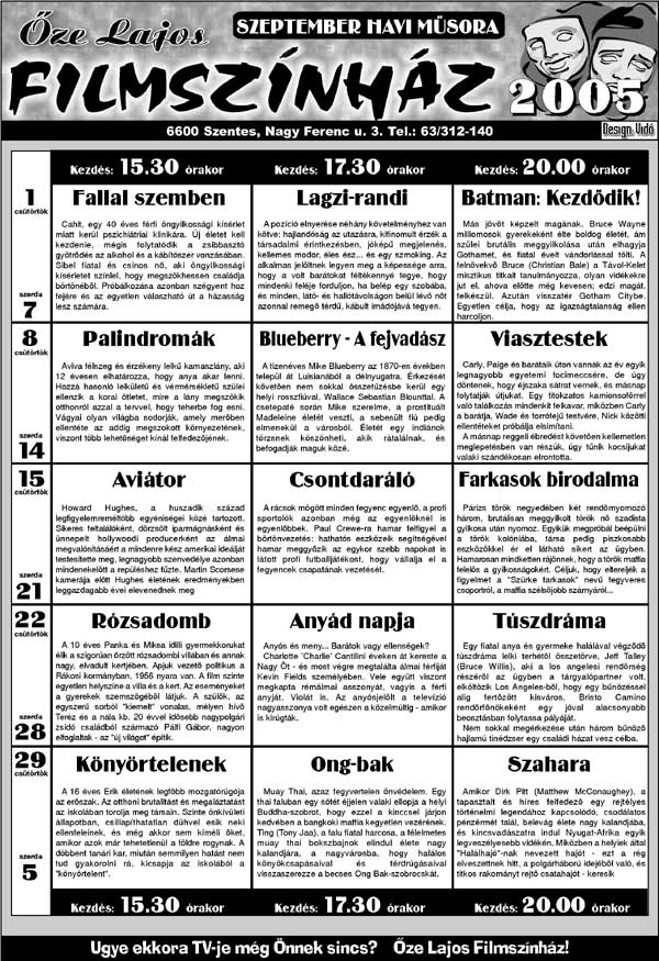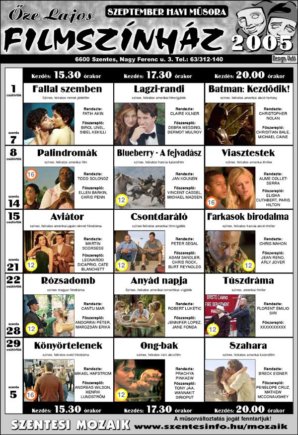 Őze Lajos Filmszínház 6600 Szentes, Nagy Ferenc u. 3. Tel.: 63/312-140