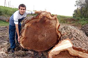 Ennek a területnek a kitermelése benne van az éves erdőgazdálkodási tervben, melyet minisztériumi szinten is jóvá kell hagyni. Törvény írja elő, hogy az erdőgazdálkodó köteles erdőgazdálkodási tervet készíteni, amelyben maga határozza meg, hogy az üzemtervben az egyes erdőrészletekre megállapított feladatait és haszonvételi lehetőségeit melyik évben kívánja végrehajtani, illetve gyakorolni. Az erdőgazdálkodási tervnek erdőrészletenként tartalmaznia kell az erdő-felújítási, erdőnevelési feladatokat, valamint az elvégezni kívánt fakitermelési munkákat. A fakitermelés után természetesen újra telepítik ezt a területet, amit megint csak évtizedek múltán látogat meg a motoros fűrész. A mostani fakitermelés nem nyúlik a Tisza vonaláig mert a kitermelések során az árterületeken véderdősávot kell hagyni az erdőgazdaságnak, mert különben az árvíz veszélyeztetné a gátat. Szentes, 2005. 09. 29. |
