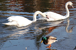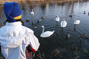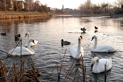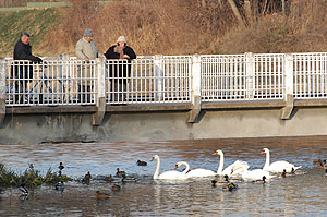 Kellemes vasárnap délutáni kirándulásoknak lett a színhelye a Makai-híd és környéke, ahol több tucat vadkacsa társaságában úszkáltak a hattyúk. A kilátogatók eleséggel érkeztek a hídhoz, így akár szinte majdnem kézből lehetett etetni a nagy madarakat.