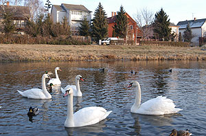 Akárhogy is számoltuk, nem jött össze a hat tyú Szentesen a Kurcán, mert csak öt megtermett hattyú úszkált méltóságteljesen a félig befagyott folyócskán.