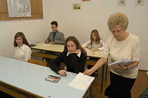 Először egy tollbamondást kellett írni. A szöveg különösebb helyesírási problémát nem jelentett a diákok számára.