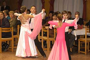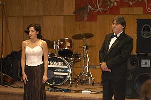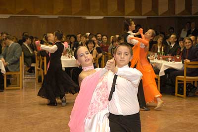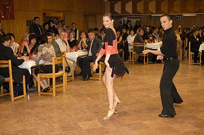 A bál műsorát a Szilver TSE táncosai indították, akik valamilyen formában kötődtek az iskolához. Budai Attila és László Szilvia táncbemutatóját tekinthettük meg először. Attila az iskolának volt a növendéke, és a páros most érkezett haza Miamiból, ahol egy újévi koncerten bemutatóztak. A többszörös Magyar Bajnokok páros először latin táncokat táncoltak.
