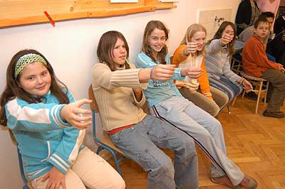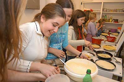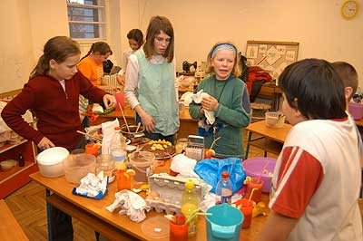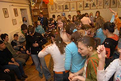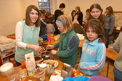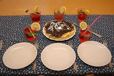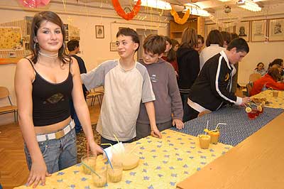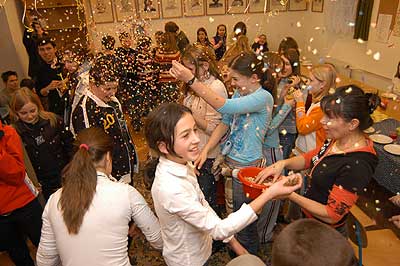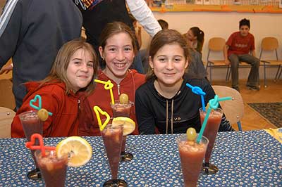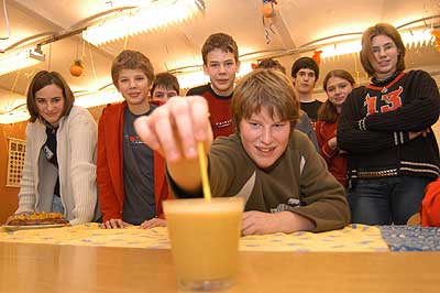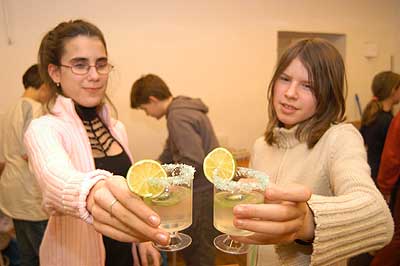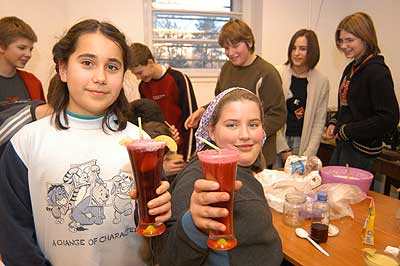 Már évek óta hagyomány, hogy egy délutáni party-t rendeznek a diákok, amit úgy is fel lehet fogni, hogy közös utószilvesztert tartanak. Az alma és palacsinta party-k után idén KOKTÉL, vagy Coctail Party-t rendeztek. A party nevének kiejtésében nem sok a különbség, de a lényeg, hogy inni lehet. Még mielőtt valaki megbotránkozna, tudatjuk hogy az összes pohárba való alkohol mentes, és a legdurvább hozzávaló a gumimaci volt. Nem csak koktélokat kevertek, hanem palacsintát is sütöttek a gyerekek, hogy teljes legyen a party étrend, amelyet ha elkészítettek fel is kellett tálalniuk. Első körben egy furcsa koktélra lettünk figyelmesek, melyet nyolc diák figyelt keverés közben. Már akkor látszott, hogy valami különlegeset alkottak, így hát megkérdeztük a Gyilokmilok Bendőrázató Koktél receptjét.