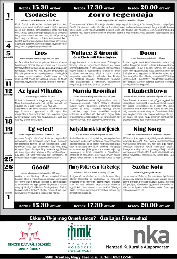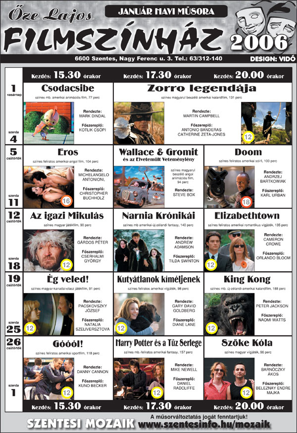 Őze Lajos Filmszínház 6600 Szentes, Nagy Ferenc u. 3. Tel.: 63/312-140