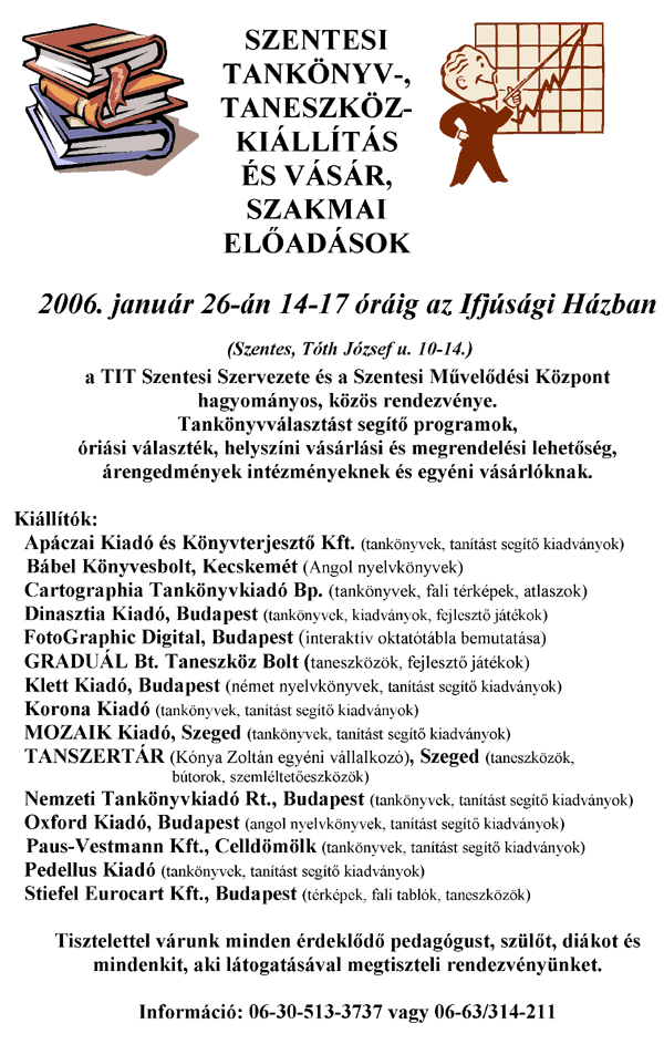 2005. december végén megjelent a Szentesi Programajánló füzet második évfolyam első (ötödik) száma. A negyedévente megjelenő ingyenes kiadvány célja, hogy az aktuális év negyedévenkénti programjait, rendezvényeit propagálja.