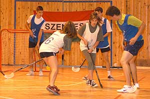 De mi a floorball pontosan? Szinte olyan mint a jégkorong, jég és korong nélkül, melyet műanyag fejű és carbon nyelű ütőkkel játszanak, és egy lyukacsos műanyag labdát kergetnek a játékosok. A cél, hogy minél többször lőjük be az ellenfél kapujába a lasztit. Szentes, 2006. 10. 22. |