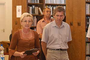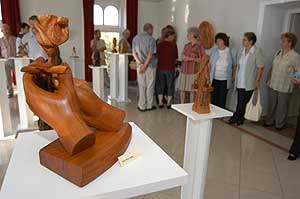 A szobrokat ajánló Nagy Edit is többször kérte, legalább a helyi közönség elé álljon ki. A szegvári Művelődési Központ munkatársa kitartó volt, megvárta, míg elérkezik a megfelelő pillanat. Így mutatkozott be először lakóhelyén, s most munkát adó városában. - A fából készült alkotások láttán furcsa érzésem támad - mondta Nagy Edit. A fa legcsodálatosabb dolog, gyönyörködtet, és mégis kivágjuk, saját céljainkra használjuk, tető és bútor lesz, meggyújtva meleget ad. A legmagasztosabb felhasználás azonban mégis ez: a művész kezében a fa életre kel. Szentes, 2006. 10. 16. |