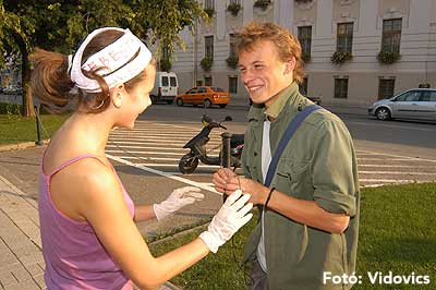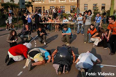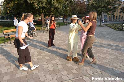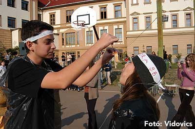 Mint már megszokhattuk, hogy a gólyaavatáskor vannak belsős és külsős feladatok, hogy ne csak az iskola diákjai lássák, hogy gólyaavatás van, hanem Szentes lakosai is. Ezért ezen a napon (2006. október 13-án) több olyan csoporttal találkozhattunk a Kossuth téren, akik pelenkával vagy Tesco-s szatyorral a fejükön próbáltak táncra kérni járókelőket. Azért nagy túrát kellett annak tenni, akinek a Tesco-ban kellett körbeugrálni az áruházat belülről és közben kiabálni, hogy a legjobb HMG-s gólyának lenni.