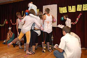 A verseny vége felé szituációs feladatott kellet megoldaniuk, azaz eljátszaniuk az osztályoknak: 9. a: egy szállodában lakunk és a gyűrűnket beleejtettük a WC-be, és nem tudjuk kivenni abból. Szólnunk kell a portásnak, csak vele van egy apró probléma. Süket és néma. Hogyan oldanátok meg a helyzetet, játsszátok el! 9. b: a diákok nem készültek az órára és a tanárnő idegesen ordít velük. Mindenkinek el kell magyaráznia neki, hogy miért nem tanult. 9. c: egy buliban egy bandából az egyik fiú többet iszik, mint kellett volna, azaz képtelen kommunikálni. A haverok hazaviszik, ahol az apuka nagy előszeretettel fogadja őket. El kell magyarázni hogyan és miért történt ez az egész.