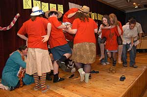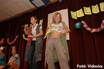A színpad ezután a kelet varázsát varázsolta elénk, mert az "önként jelentkezőknek" hastáncot kellett bemutatni.