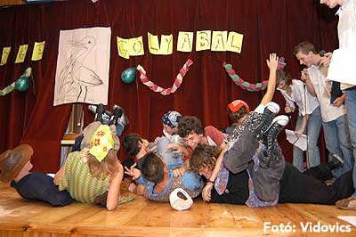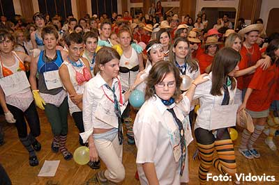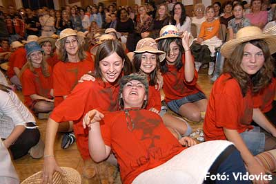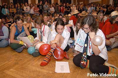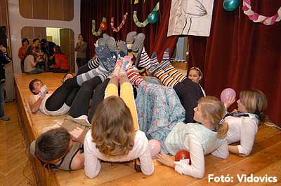 Kicsi ugyan a rakás, de a végén tényleg nagyobbat kívánt, mert a következő feladatban 10 embernek úgy kellett állnia, hogy a legkevesebb lábuk érje a földet. Jött is a jó tanács! Felemeled az egyik lábad és utána hozzá zárod a másikat!