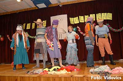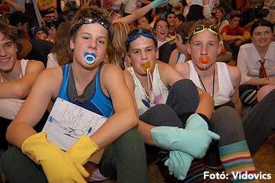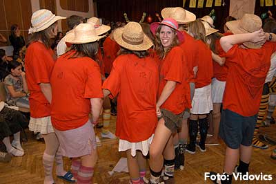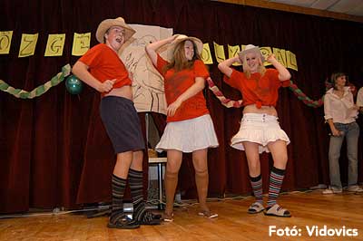 A gólyák öltözéke osztályonként volt szabványos, mert míg az egyik osztálynak piros póló, fehér szoknya és szalmakalap volt a kötelező viselet addig a másik csapatnak otthonkával tuningolt kendős fejviselet volt az etalon.