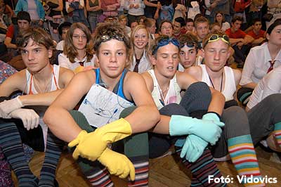 Utolsó feladatként jött a "Fűzd fel magad!" versenyszám, ahol minden kilencedikes osztály kapott egy zsineget, és az volt a feladatuk, hogy a nadrágjuk egyik lábán áthúzva végigvezessék az osztályon.