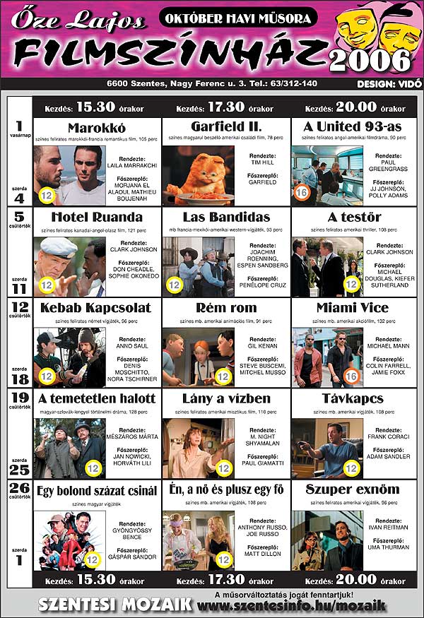 Őze Lajos Filmszínház 6600 Szentes, Nagy Ferenc u. 3. Tel.: 63/312-140