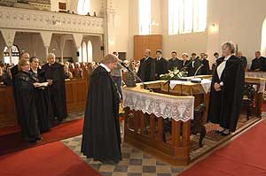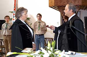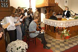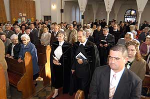 Gilicze Andrásné ünnepélyes beiktatása után a szentesi ifjúság, majd a csongrádi gyülekezet énekszolgálata következett. A palástos lelkészek igei áldása után a beiktatott lelkész igehirdetését hallhattuk. Gilicze András esperes nyilvános presbiteri gyűlést hirdetett, majd köszöntések következtek. A család nevében ifjabb Gilicze András mondott köszöntőt. A Református Fiatalok Szövetsége, a Református Nőszövetség, a Magyar Cserkész Szövetség, az Egyházmegye, az osztálytársak, a római katolikus és az evangélikus egyházak lelkipásztorai nevében is jelen volt egy-egy szószóló. Szirbik Imre polgármester, országgyűlési képviselő és Farkas Sándor országgyűlési képviselő is köszöntötte az új lelkészt. A nyilvános presbiteri gyűlést hirdetés és áldás zárta. Szentes, 2006. 11. 05. |