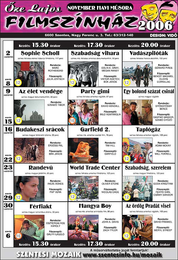 Őze Lajos Filmszínház 6600 Szentes, Nagy Ferenc u. 3. Tel.: 63/312-140