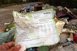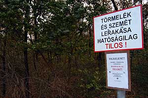 Találtunk ott iskolai dolgozatot, telefonszámlát, orvosi leletpapírokat és leveleket. A helyszínen lefényképeztük őket, majd átadtuk az illetékeseknek (az iratokat és a fotókat), akik nem éppen szívhez szóló levelet küldtek a szabálysértést elkövetőknek. Kóczán Istvántól megtudtuk, hogy a városban több illegális szemétlerakó van, amit a napokban igyekeznek a Városellátó Intézmény munkatársaival közösen felszámolni! E célból táblákat készíttettek, amelyen felhívják a figyelmet, hogy az adott helyen a szemét és törmelék lerakása hatóságilag tilos! Igaz máshol is tilos, csakhogy amint valaki eldob egy zsáknyi szemetet, sokan úgy gondolják, hogy ez feljogosítja őket, hogy mellé tegyék a saját szemetüket. Volt olyan sértett, aki felháborodott a felelősségre vonás hallatán, mert hogy nem volt kiírva, hogy tilos, de a törvények nem ismerete nem mentesíti az elkövetőket. A több mázsányi szemetet amikor elszállították akkor helyezték ki az alábbi képen látható táblát a Nagyhegy melletti területre.