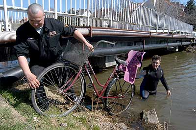 A búvárok a bíróság melletti Kurca hídnál ugrottak vízbe, hogy átvizsgálják annak környékét. Ott szinte semmit nem találtak, így következett az Ifjúsági Ház mögötti kerékpáros híd környékének átvizsgálása. Elő is került három kerékpár, meg egy disznó vályú így sikeresnek mondható az akció, melyet májusban folytatnak tovább a többi Kurca híd körül.