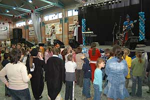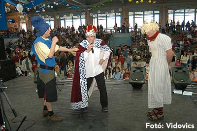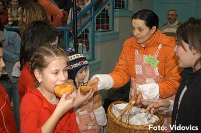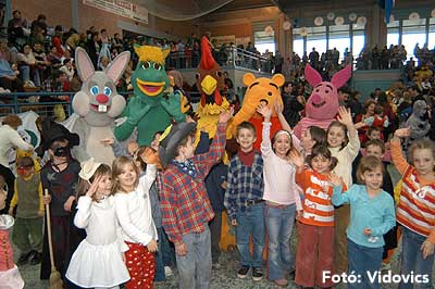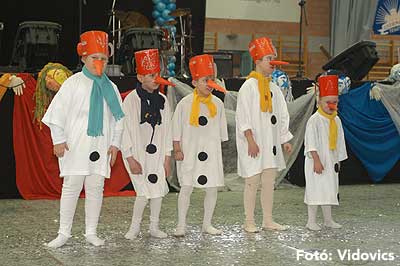 11.40-től a szabadtéri udvaron szentesi farsangi fánkkóstolás volt, majd egy órával később 12.40-től a sportcsarnokban a „Nagyoknak” kezdődött a jelmezverseny.